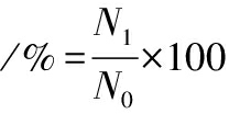 式中:N1,冷冻干燥后冻干菌粉的活菌数,CFU/mL;N0,冷干前菌悬液的活菌数,CFU/mL。
