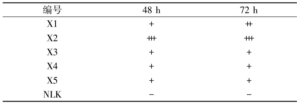 注:-:无沉淀圈;+;沉淀圈半透明;++:沉淀圈半透明且直径>9 mm;+++:沉淀圈不透明且直径>9 mm。