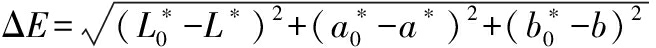 采用色差计测定饮料表面的色度值,记录L*、a*和b*并根据公式(1)计算总色差ΔE: