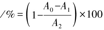式中:A0,样品+DPPH工作液吸光值;A1,样品+无水乙醇吸光值;A2,无水乙醇+DPPH工作液吸光值。