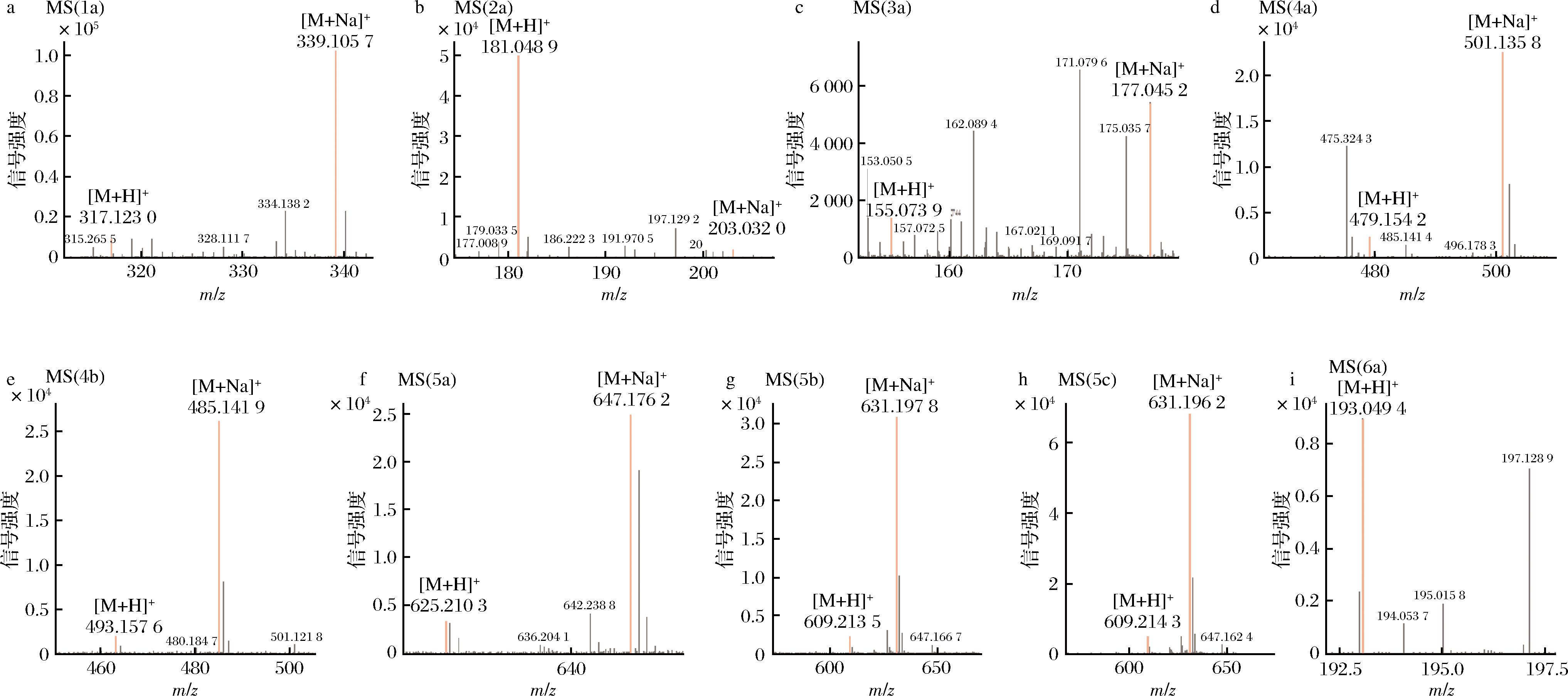 LC-MS检测方法:HPLC条件与上述相同,质谱检测采用正离子监测模式,在m/z 50~1 000范围内进行全扫描采集。