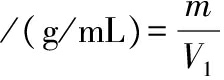 式中:m,样品的质量,g;V1,样品振荡前的体积,mL。