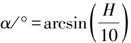 式中:H,玻璃平板一段抬高的距离,cm;10,玻璃平板的长度,cm。