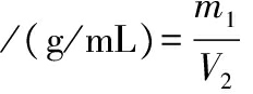 式中:m1,样品的质量,g;V2,样品振荡后的体积,mL。
