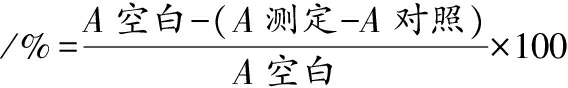 式中:A测定、A对照、A空白分别为测定样品、对照样品、空白样品在510 nm波长下读取的吸光值。
