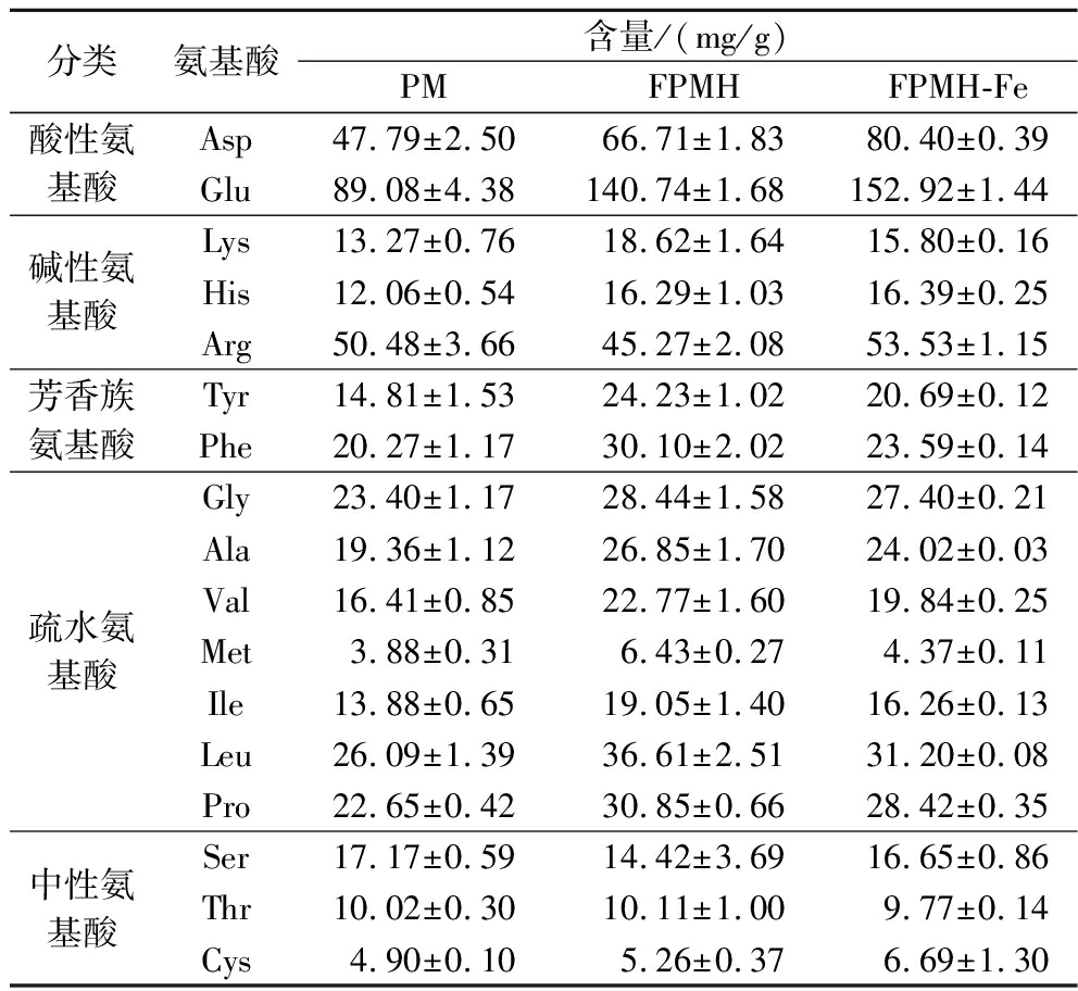 表4 PM、FPMH和FPMH-Fe的氨基酸组成