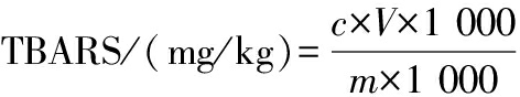 参考国家标准GB 5009.181—2016《食品安全国家标准 食品中丙二醛的测定》,建立标准曲线,样品的TBARS值的计算如公式(2)所示: