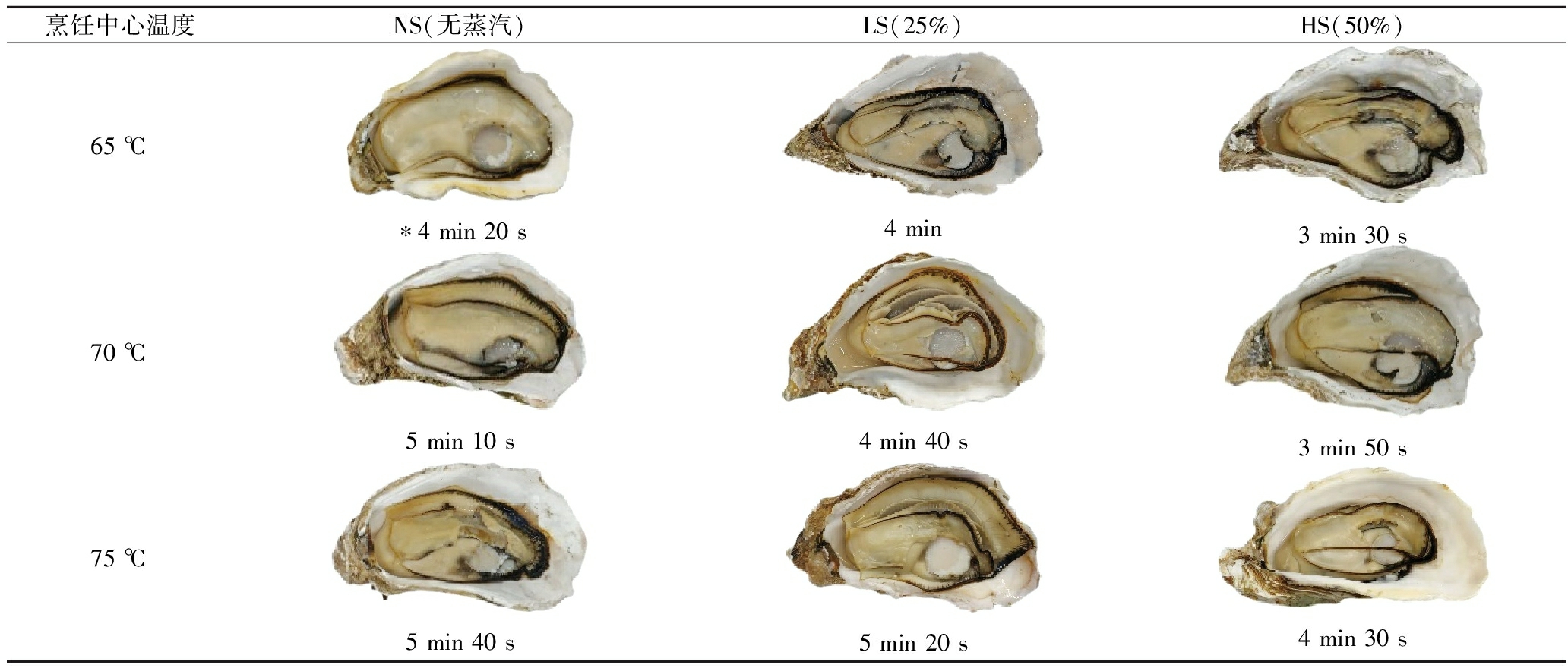 表2 蒸汽辅助烘烤得到牡蛎的外观