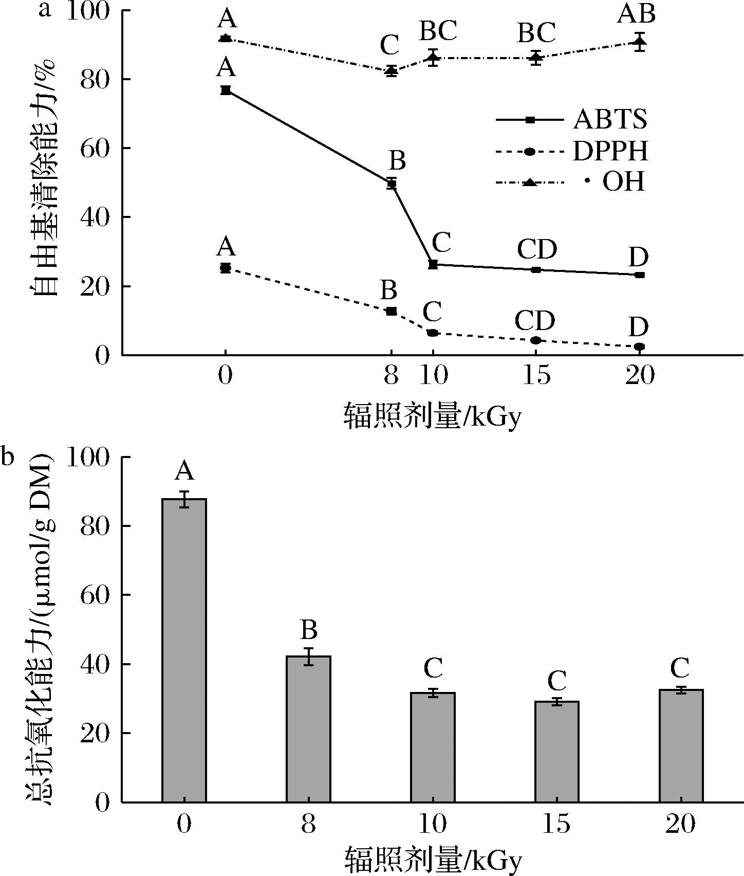 a-自由基清除能力;b-总抗氧化能力