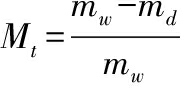 湿基含水率(wet basis moisture content,Mt)是指物料中水分的质量与湿物料的总质量之比,表现了物料中水分的实际含量,单位为g含水量/g湿物料。按公式(2)计算: