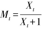 式中:X0,原始物料的干基含水率,g含水量/g绝干;Xe,干燥后物料的干基含水率,g含水量/g绝干。由于数值上Xe≪Xt,Xe≪X0,因此公式(4)可以简化为公式(5):