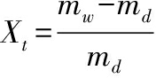 干基含水率(dry basis moisture content,Xt)是指物料中水分质量与干燥后物料的干重之比,衡量了物料中水分的相对含量,单位为g含水量/g绝干。按公式(1)计算: