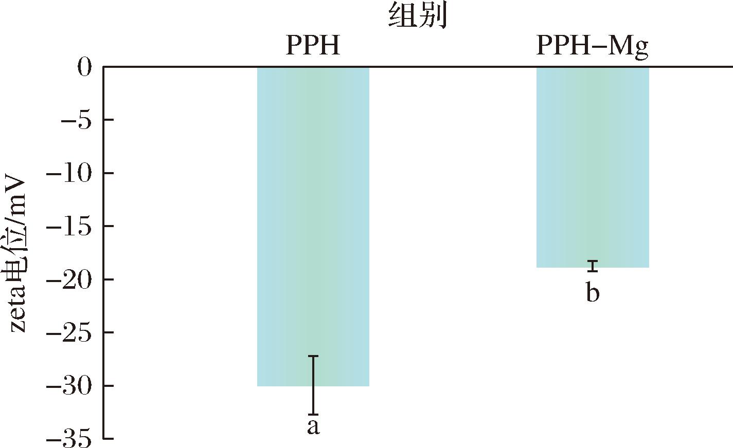 将PPH和PPH-Mg配成1 mg/mL的溶液,利用纳米粒度及zeta电位分析仪对其进行电位分析。