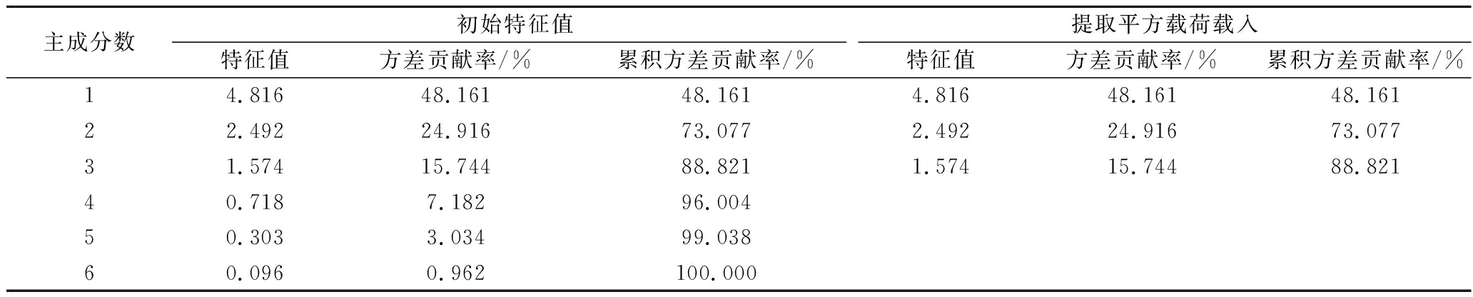 主成分数初始特征值提取平方载荷载入特征值方差贡献率/%累积方差贡献率/%特征值方差贡献率/%累积方差贡献率/%14.81648.16148.1614.81648.16148.16122.49224.91673.0772.49224.91673.07731.57415.74488.8211.57415.74488.82140.7187.18296.00450.3033.03499.03860.0960.962100.000