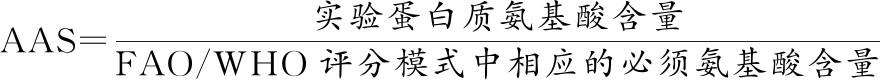 根据FAO/WHO氨基酸评分模式[14]进行氨基酸评分(amino acid score,AAS),如公式(3)所示: